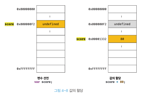 처음 score가 선언되고 `undefined`가 초기값으로 자동 할당된다. 이후 80으로 값이 할당되고 score 값은 80이 된다.