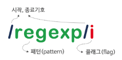 아래와 같이 정규표현식 리터럴은 패턴(pattern)과 플래그(flag)로 구성되어 있습니다.