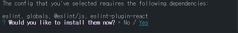 까지 진행하면 ESLint 설치가 완료되었습니다.
