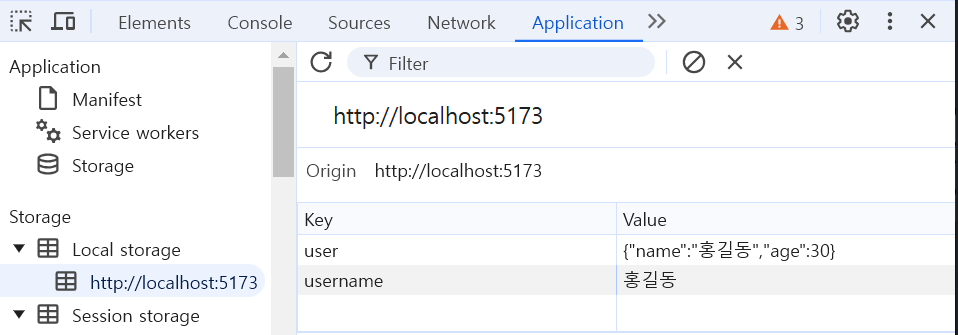 localStorage.setItem("username", "홍길동"); // "홍길동"을 username 키로 저장