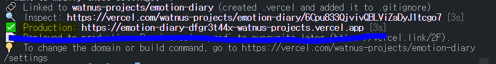 배포가 완료되면 터미널에 Production URL이 표시됩니다.